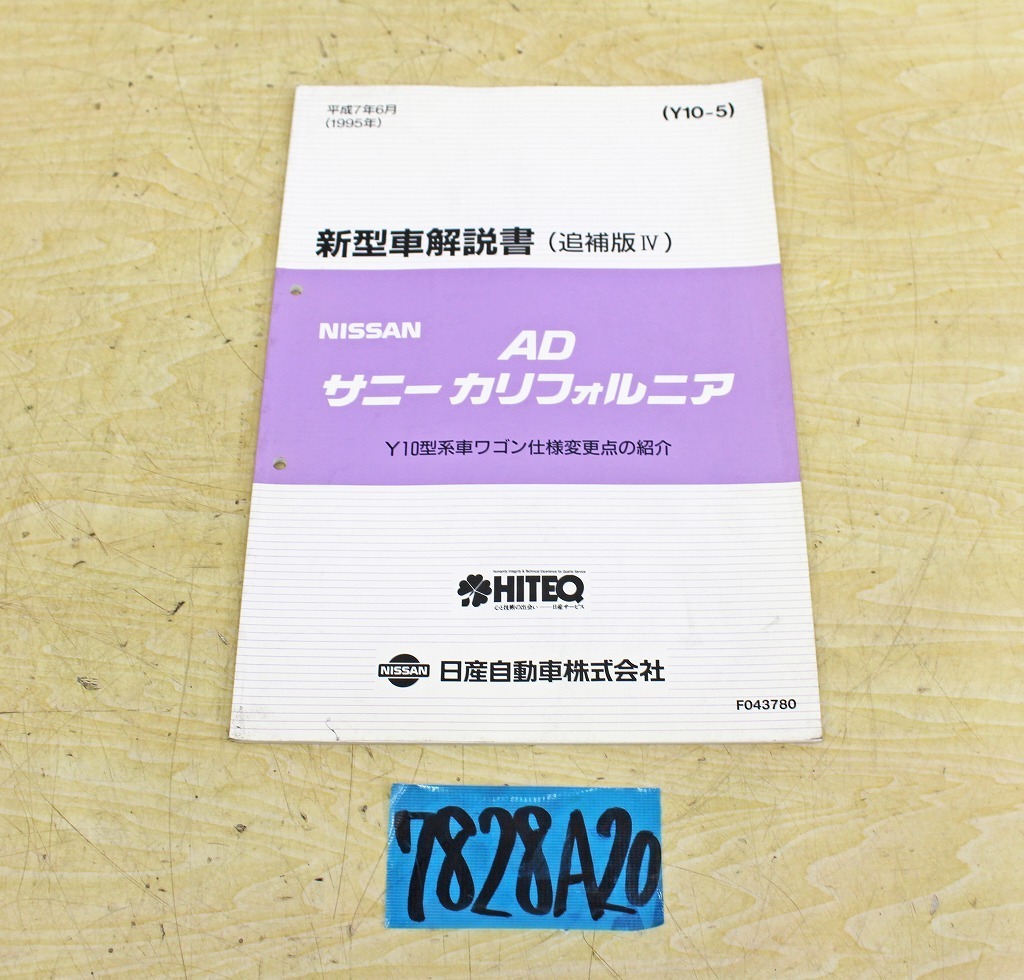 > 7828A20 NISSAN 日産自動車 新型車解説書 AD サニーカリフォルニア 1995年 追補版Ⅳ マニュアル ニッサン