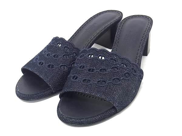 - 1円 ■美品■ HERMES エルメス デニム ヒール サンダル 表記サイズ 36 (約23cm) 靴 シューズ レディース ネイビー系 FP9047