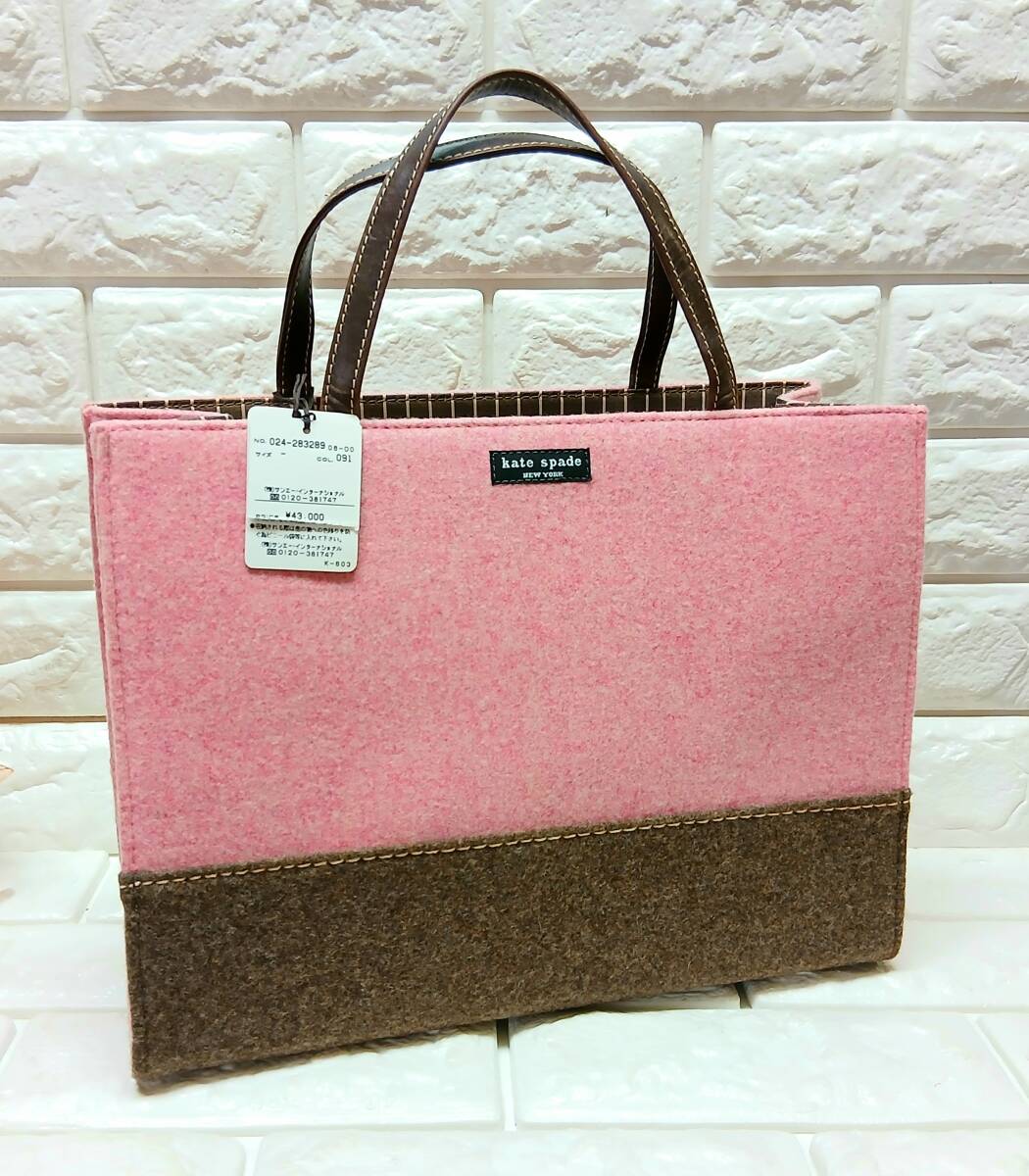 > n591 未使用【Kate spade/ケイトスペード】 トートバッグ (タグ付) フェルト素材 (ピンク&ブラウン)