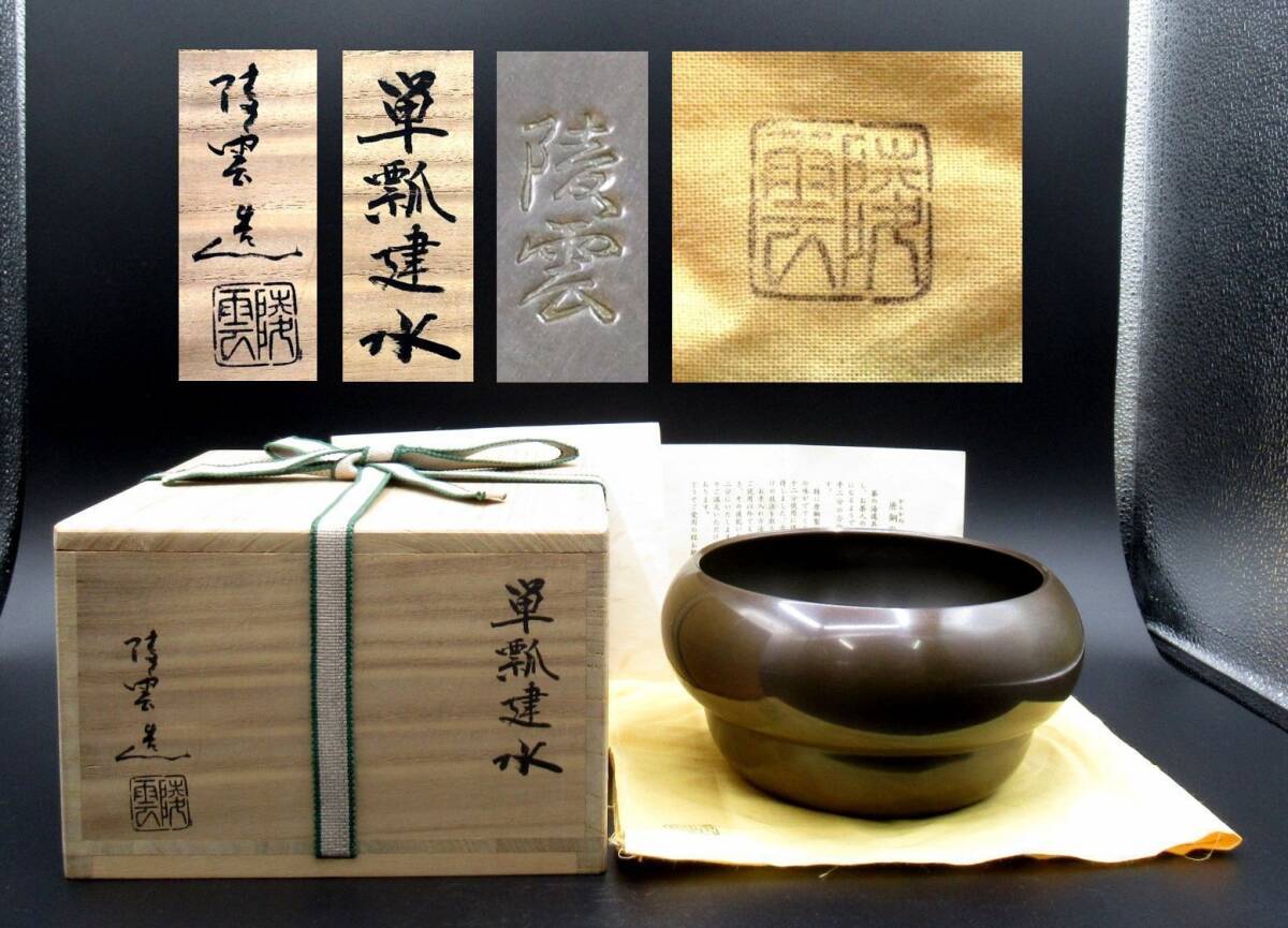 > 茶a『 高井陵雲 単瓢建水 共箱 共布 共栞 』*Takai Ryoun. 茶道具. 金工家. 金工作家. こぼし. 唐銅
