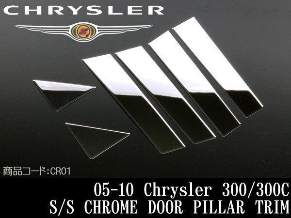> ピラーカバー 6pc 3Dカット ステンレス クローム【適合 05-10 クライスラー 300 300C 06 07 08 09 2005 2006 2007 2008 2009 CR01