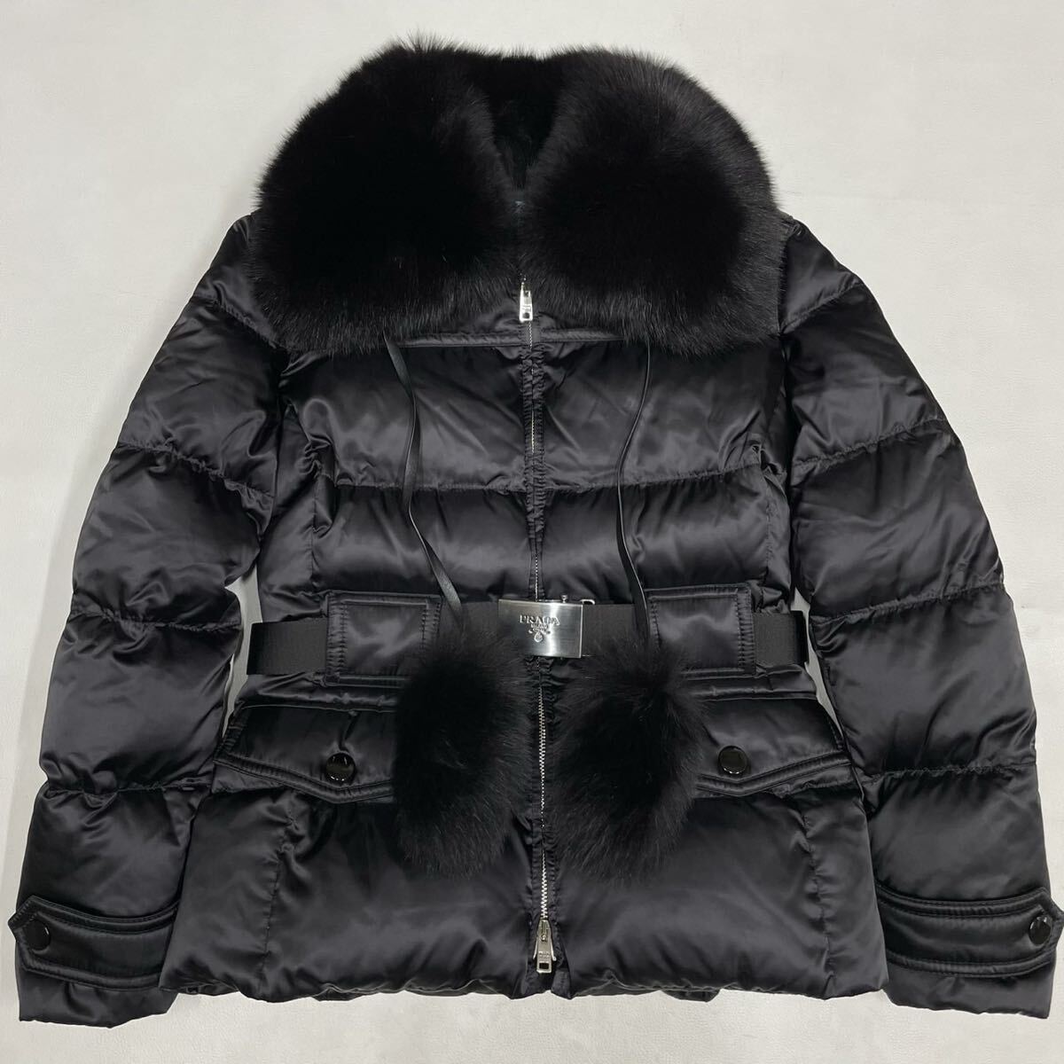 - 美品 PRADA プラダ ダウンジャケット ベルト フォックスファー 29X275 ブラック 黒