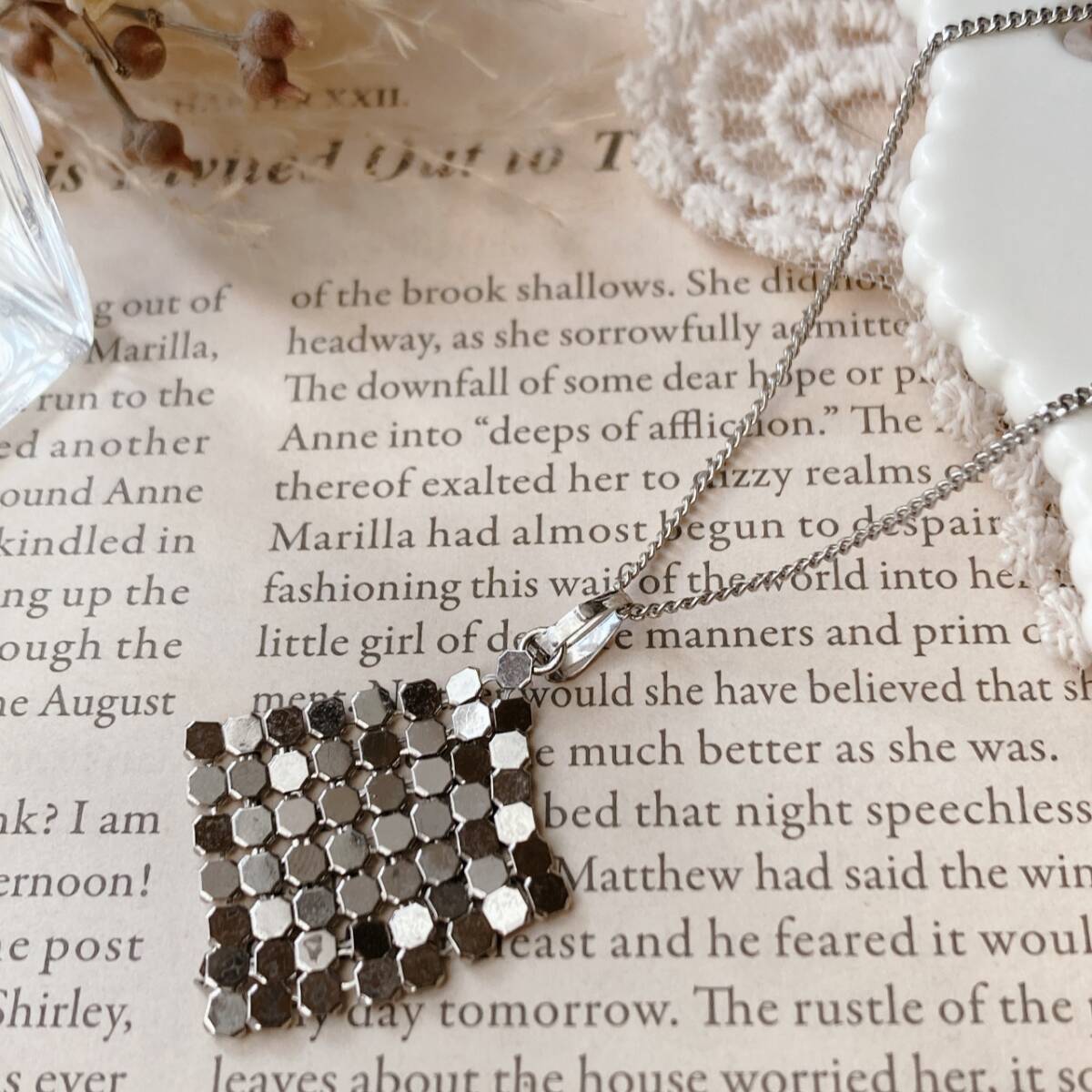 > ネックレス シルバートーン リバーシブル メタリック ショート■Vintage jewelry accessories F0442