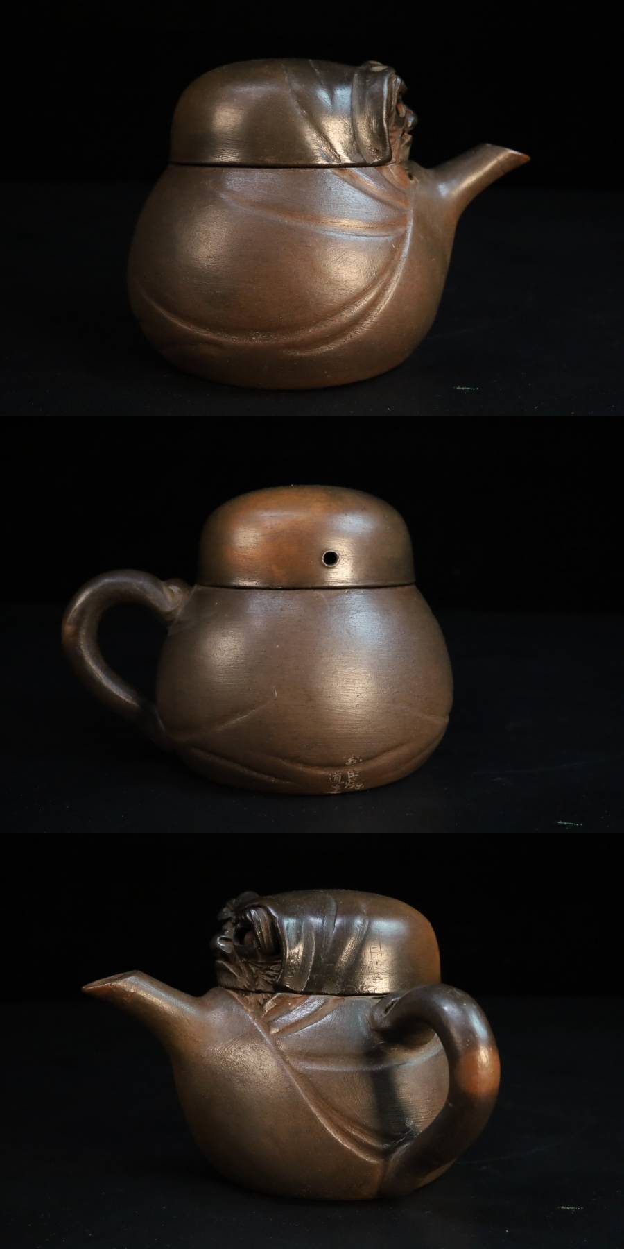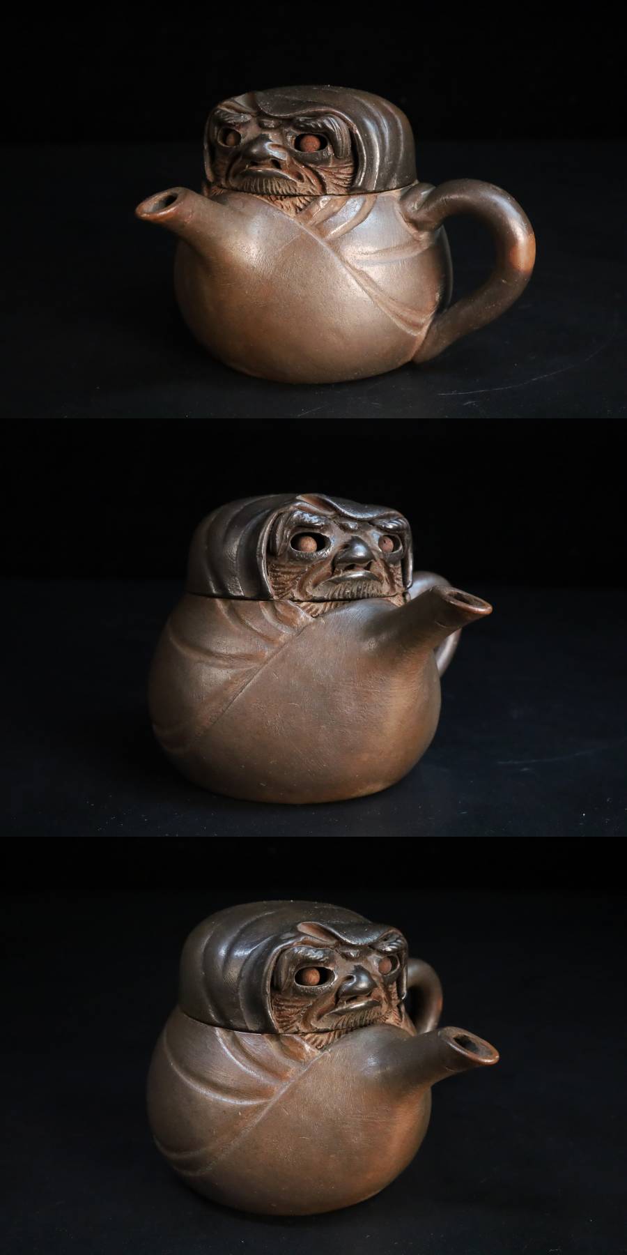 > ◇雅◇ 秋田焼 道遊 達磨形急須 からくり急須 煎茶道具 茶道具 唐物 骨董 高さ6cm/60g 合箱 /HK.25.9 [A182.1] WQ2
