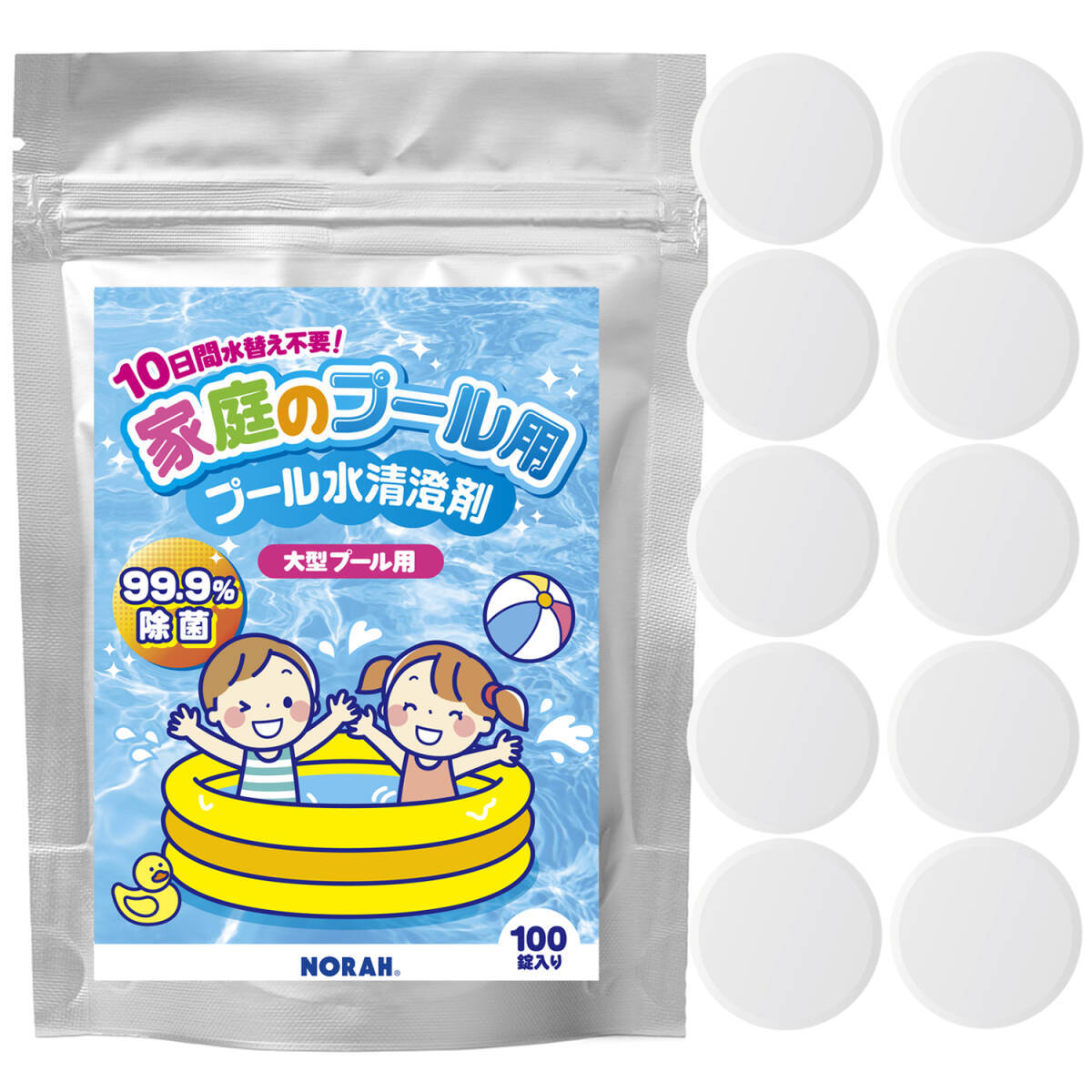 - 家庭 プール 除菌剤 99.9%除菌 水替え不要 小型 大型 プール用 汚れ ぬめり 臭い 防止 次亜塩素剤 塩素除菌 安心の日本製 個別包装 100錠
