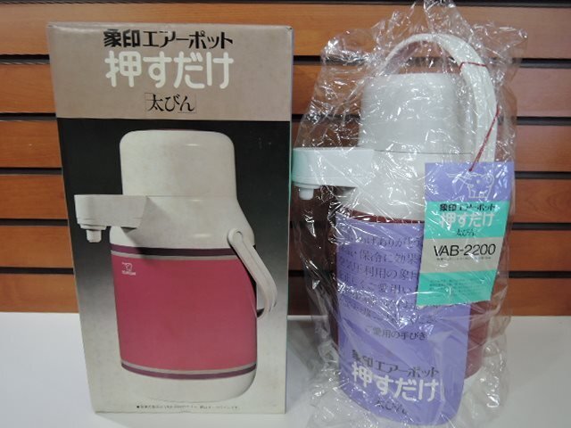 - 昭和レトロ 象印マホービン 象印 エアーポット 押すだけ 太びん VAB-2200 チェックワイン 2.23L 魔法瓶 魔法ビン 経年保管品/未使用品
