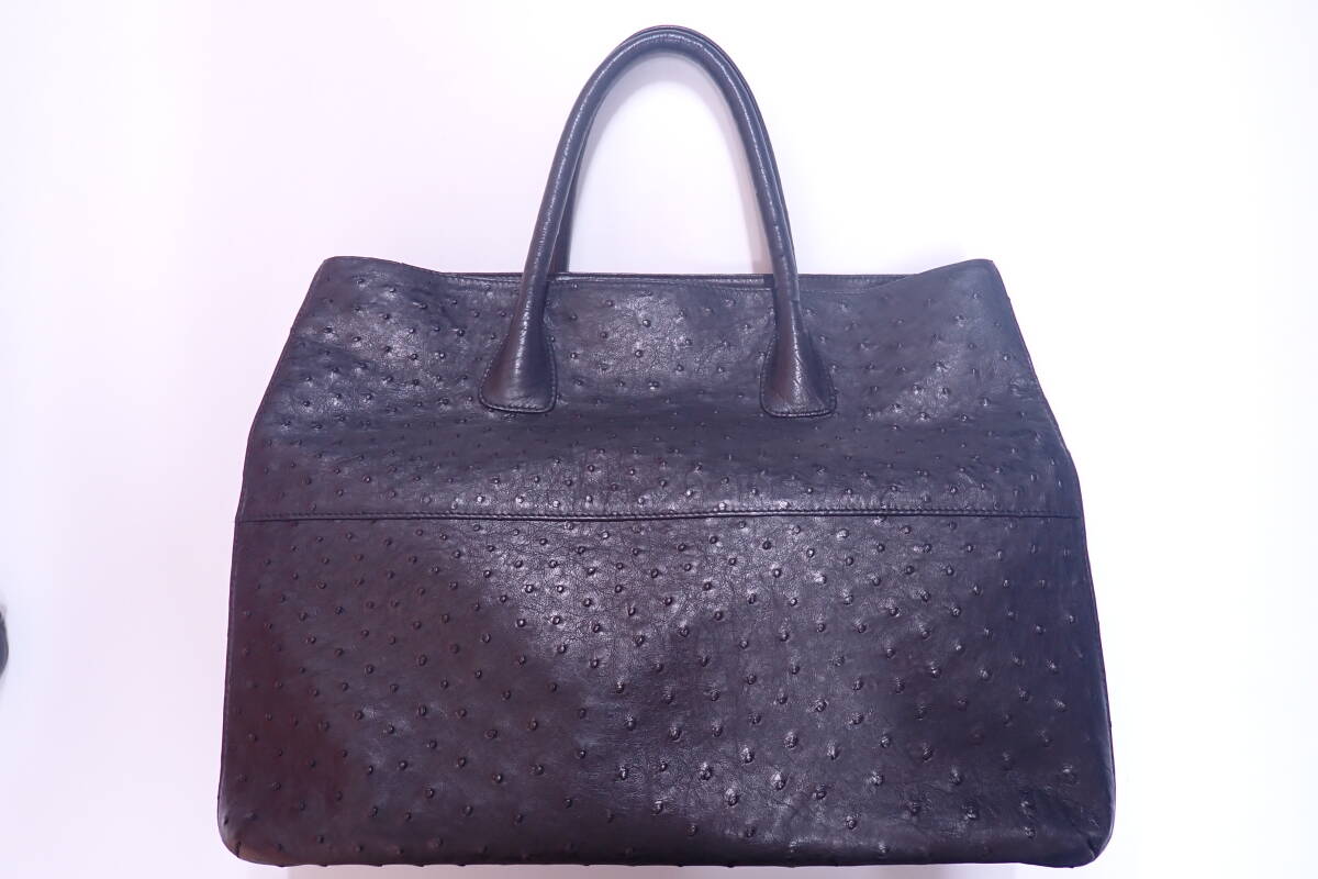- オーストリッチ ハンドバッグ 幅39cm マチ11cm ブラック 本革 レザー ダチョウ M11042T