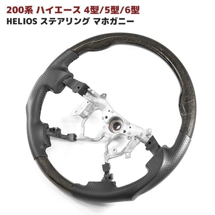 > HELIOS 200系 ハイエース 4型 5型 6型 7型 8型 ガングリップ ステアリング マホガニー調 黒木目 新品 ダークプライム 近似色 内装 カスタム