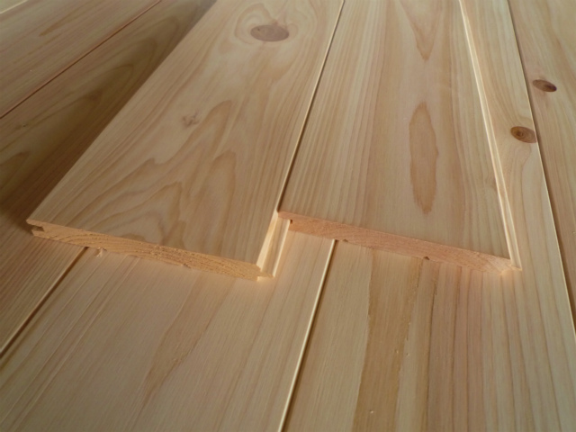 - 950mm材 フローリング加工 桧羽目板 AB混合品 本実 90×9.5/60枚:三畳分/節・埋め木/天乾材/サンダー仕上げ