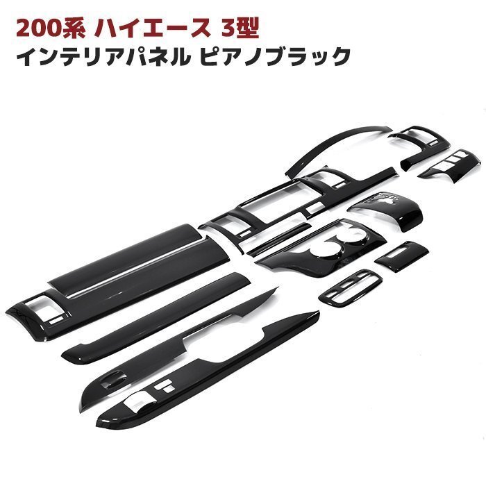 - 200系 ハイエース 標準 3型 ピアノブラック インテリア パネル 14P セット 新品 オートエアコン用 インパネ 内装 カスタムパーツ トヨタ
