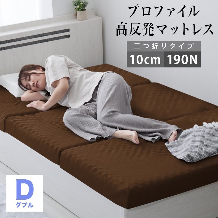 - 【ダブル ブラウン】 プロファイル加工 三つ折りマットレス 190N 極厚10cm 高反発マットレス 通気性 敷布団 凸凹