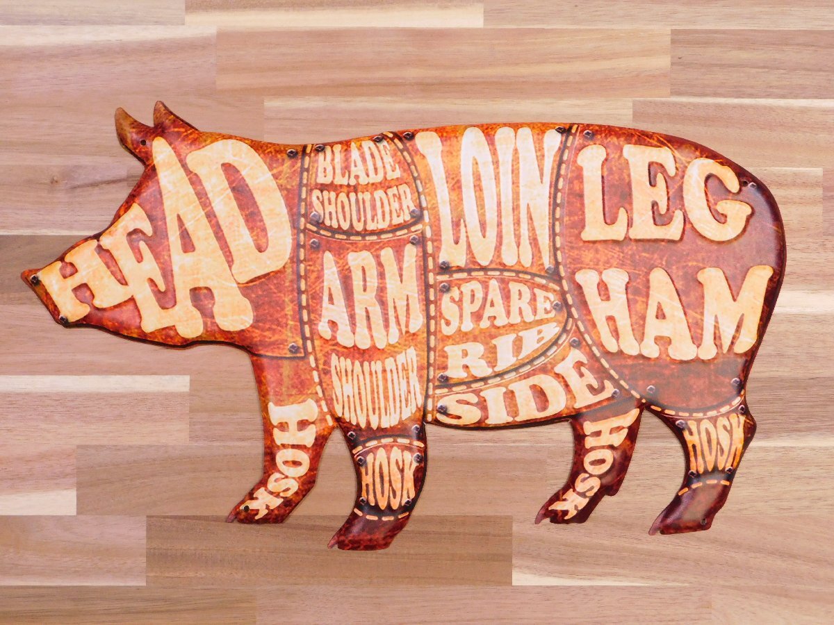 - 【PORK PART・豚肉部位】※《エンボスメタルサイン》 アメリカン雑貨 エンボス看板 ブリキ看板 168