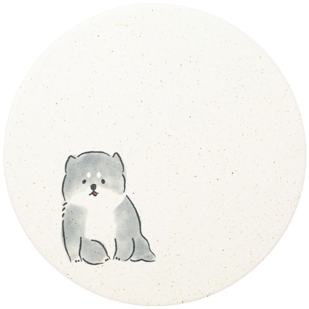 > アンドエヌイー(&NE) 陶器珪藻土コースター mameshiba きょとん 直径9.7cm×厚さ0.6cm 吸水コースター 日本製 美濃焼 ア
