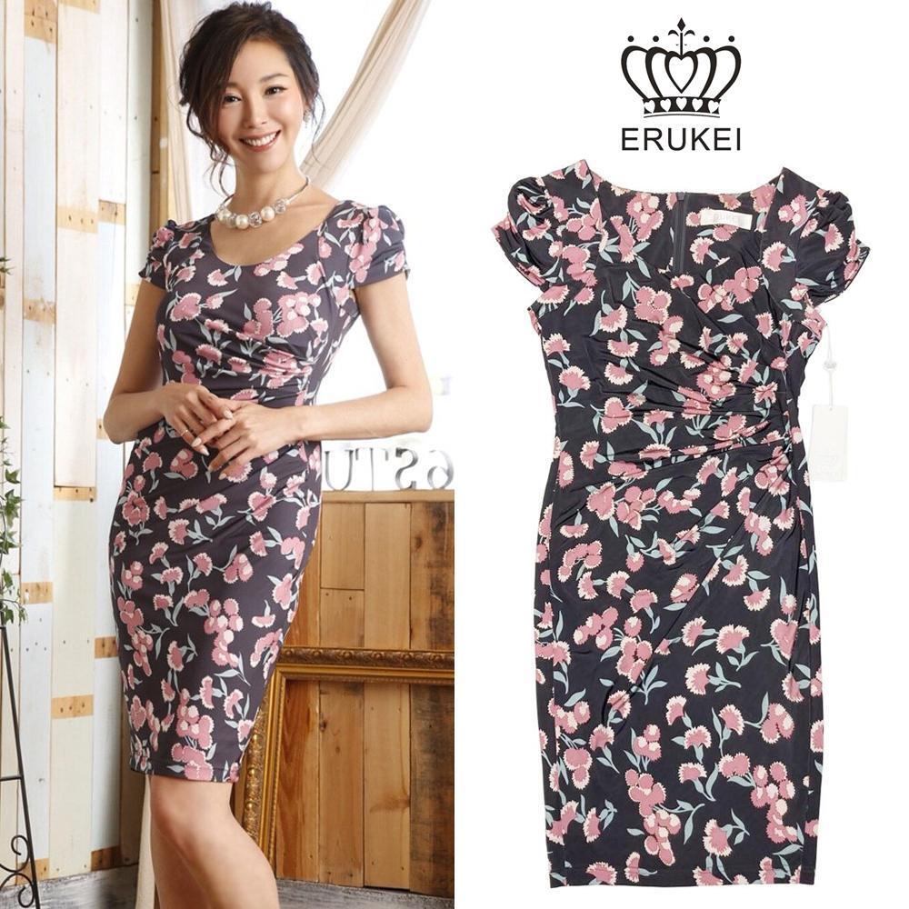 - ERUKEI エルケイ フラワープリント タイトドレス L1805 sugar シュガー