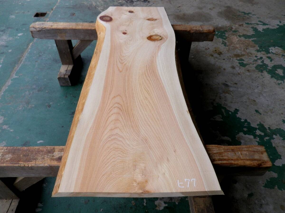 - 長143*幅41-50*厚3.5 桧77の木材木工材,一枚板自然木無垢材DIY テーブル天板 ヒノキ