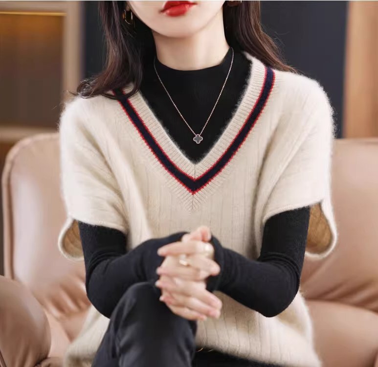 - ベスト ニットベスト ノースリーブ セーター トップス ゆったり ニットソー ベーシック ニット ゆるっとお洒落 ホワイト