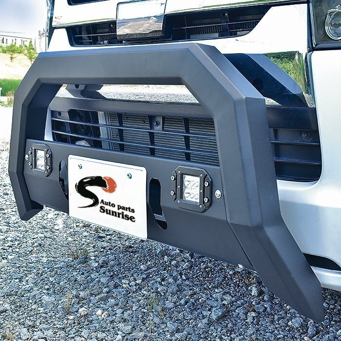 - 200系 ハイエース 標準 フォグ付 スクエア バンパー ガード スキッド付き 新品 ブラック U字型 ブッシュ バー 角型 グリル ガード トヨタ