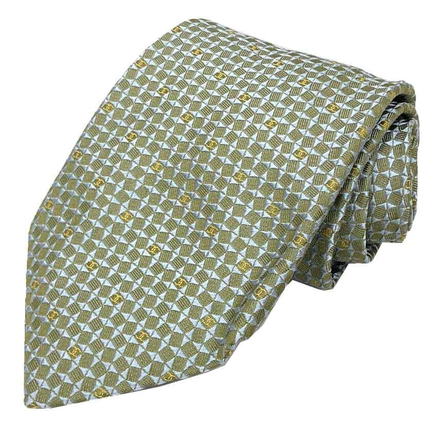 - ゆうパケット発送 全国送料無料 セール シャネル CHANEL ネクタイ ココマーク 格子柄 シルク カーキ メンズ 中古 aq12039
