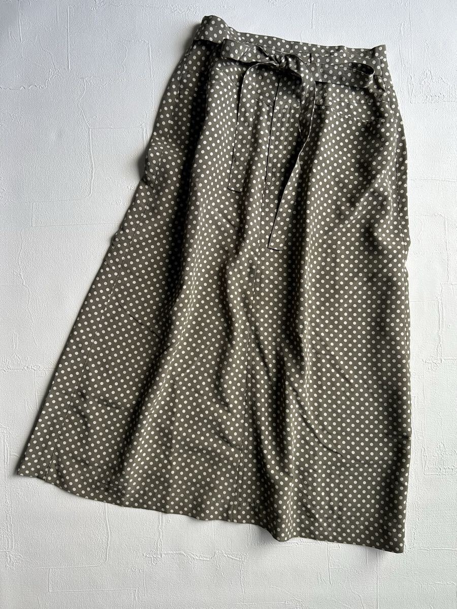 > PINK HOUSE ピンクハウス ドット柄ロングスカート リボンベルト付き スモークグリーン S相当 レトロ ヴィンテージ
