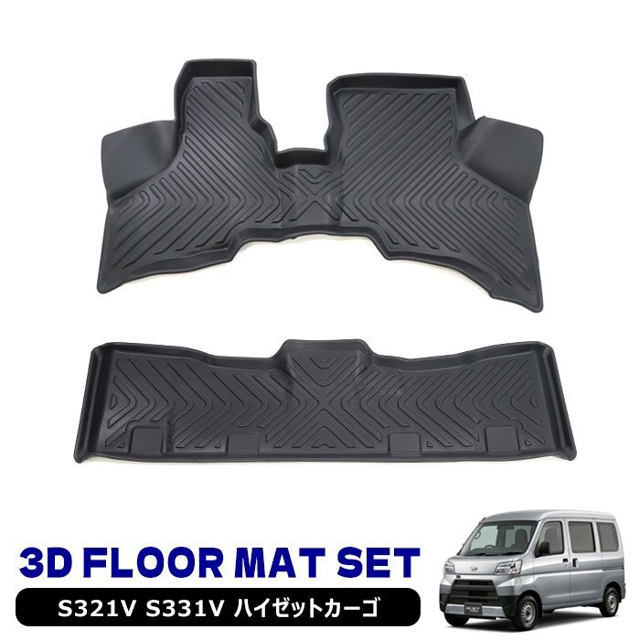 > S321V S331V ハイゼット カーゴ 3D フロアマット 前後セット フロント セカンド 防水 防汚 TPO素材 ゴム ブラック 2P 新品 ダイハツ S300系