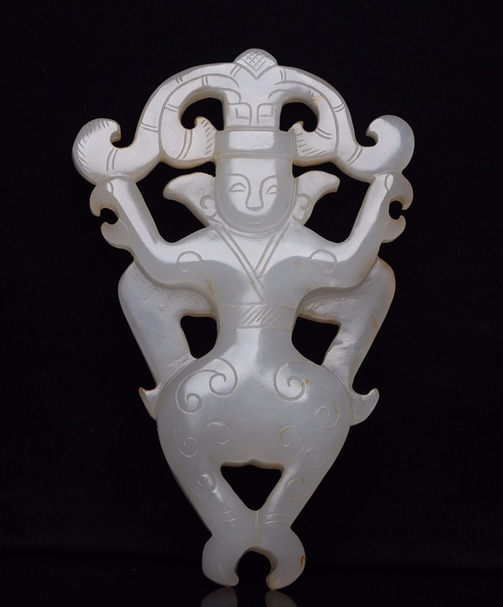 - 旧蔵 和田玉彫 飛人 根付 中国古玩 骨董品 時代物 稀少唐物