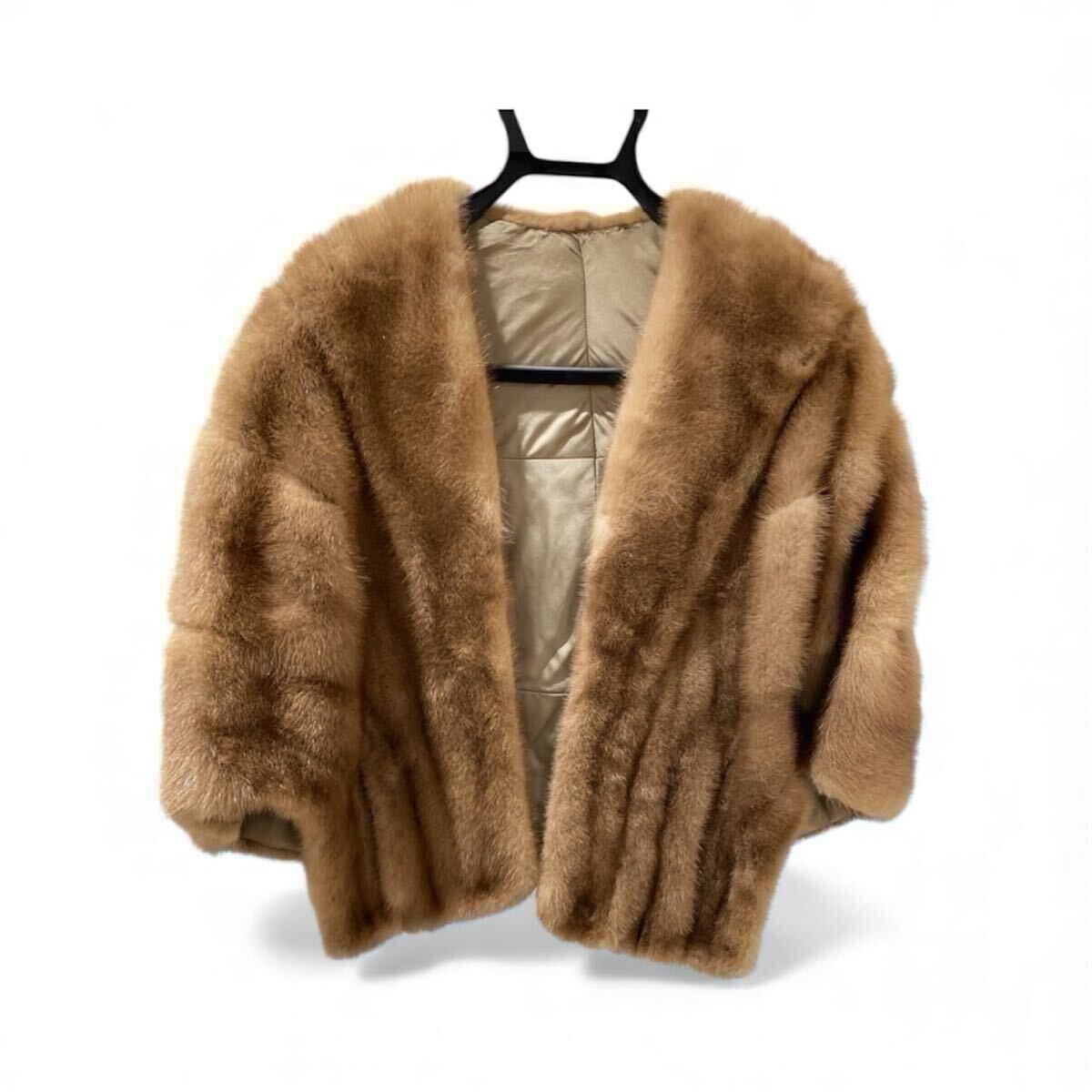 - 1円〜!ミンクショートショール 毛皮 ケープ 羽織り 前開き ファー ブラウン レディース