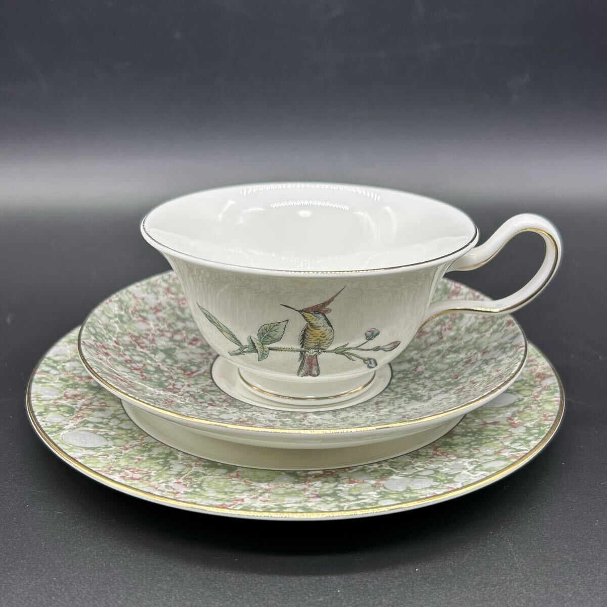 - WEDGWOOD ウェッジウッド HUMMING BIRDS ハミングバード 鳥 黒壺 カップ ソーサー ケーキ皿 ティーカップ コーヒーカップ 洋食器 フ19-3