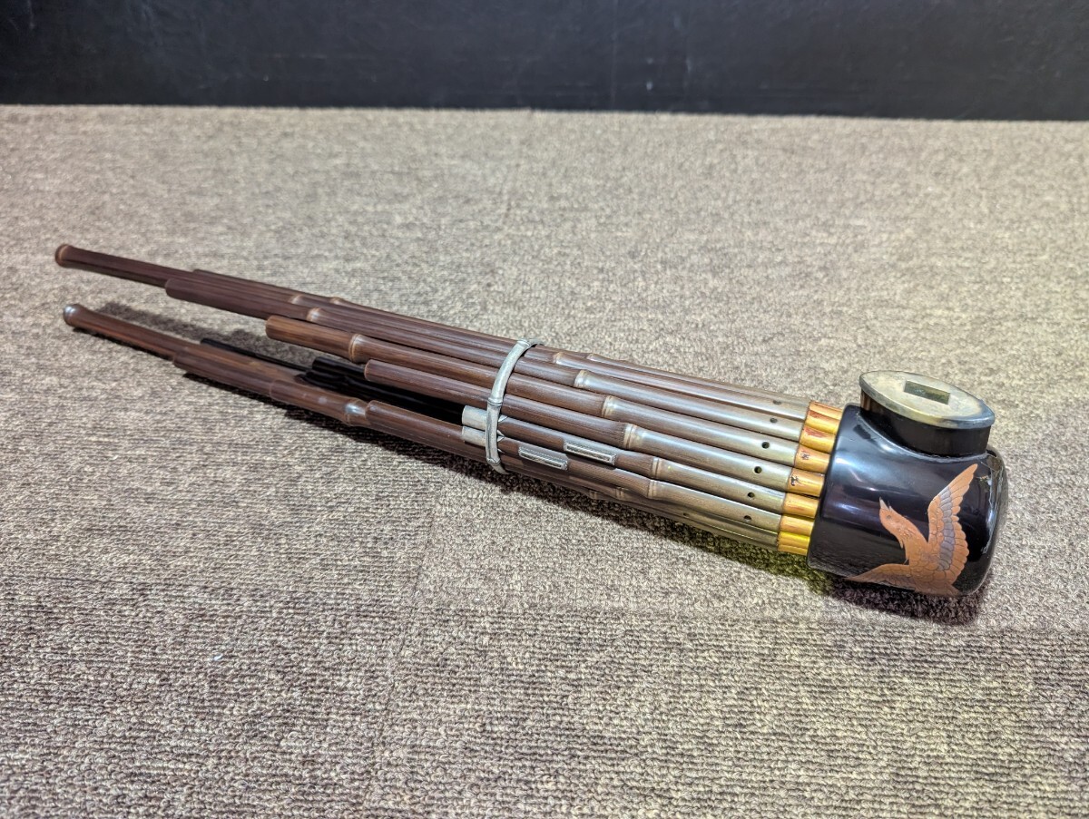 > 笙 煮竹 蒔絵あり 鳳笙 雅楽 銀口銀金具 ? 時代古典和楽器