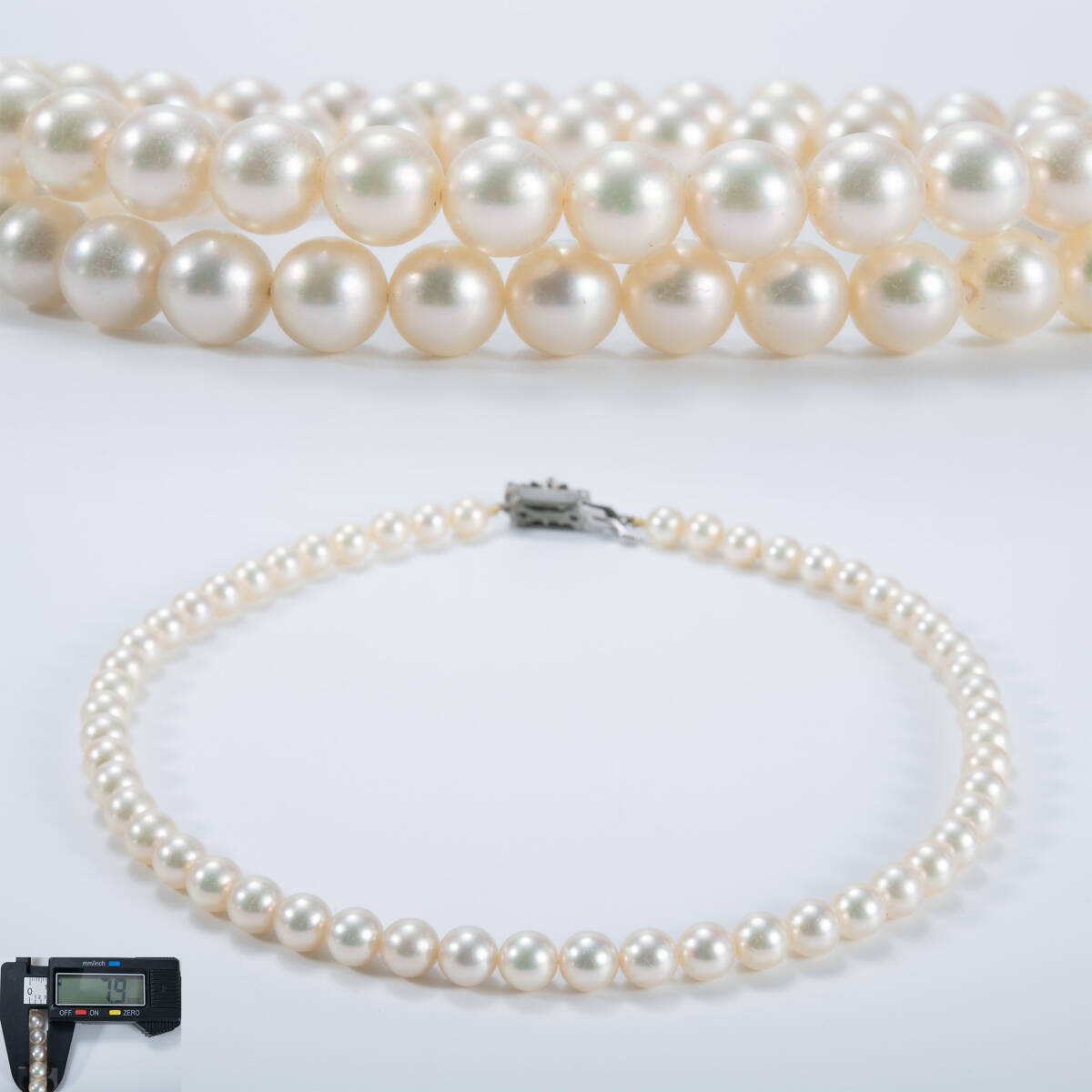 - 本真珠・アコヤ真珠・パールネックレス・シルバー・silver刻印・7.9mm・N110716