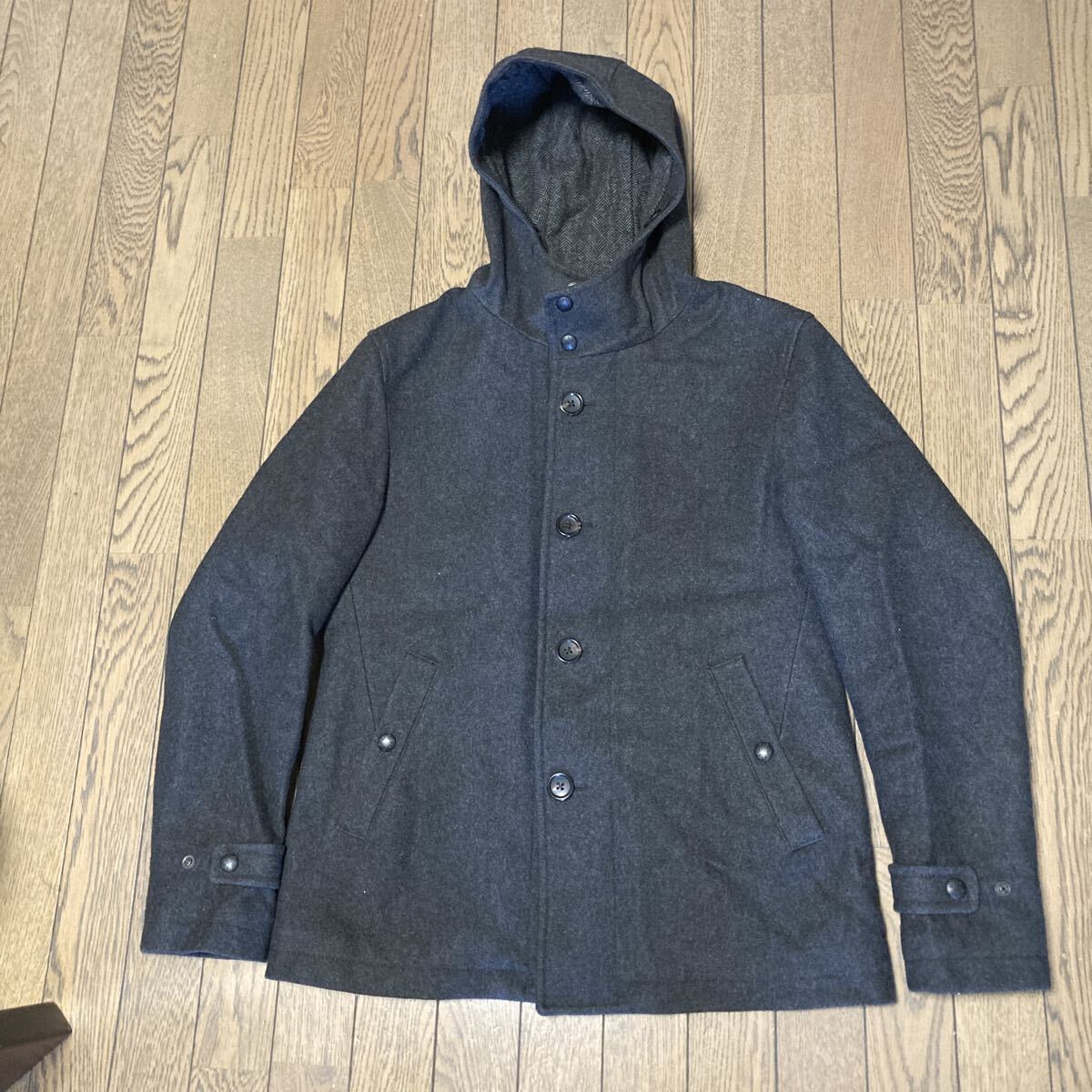 - ユナイテッドアローズ 秋冬物フード付きウールコート サイズL グレー