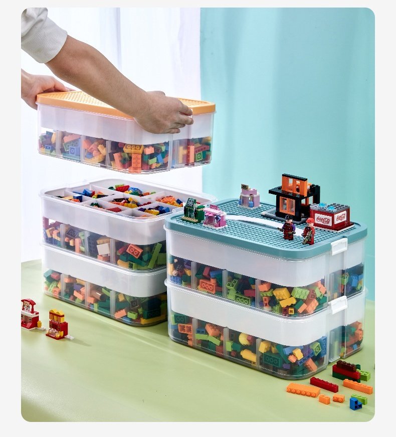 - 収納ボックス 3層式 おもちゃ 収納 レゴ ブロック 収納 ケース レゴ 収納ケース 仕切り キッズ お片付け ブロック 593or(オレンジ)