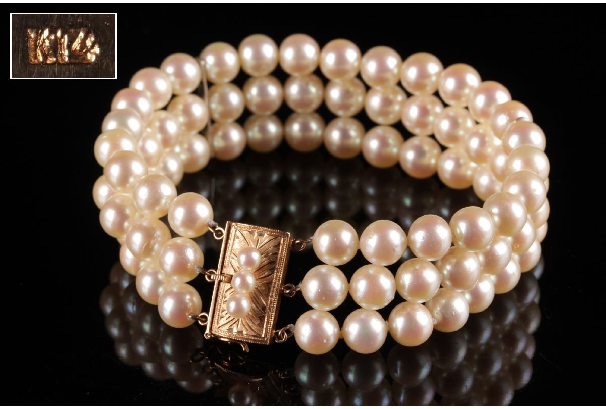 > [URA]K18金具/天然パールブレスレット/約42.6g/Φ7mm/4-11-191 (検索)骨董/真珠/パール/ゴールド/金/アクセサリー