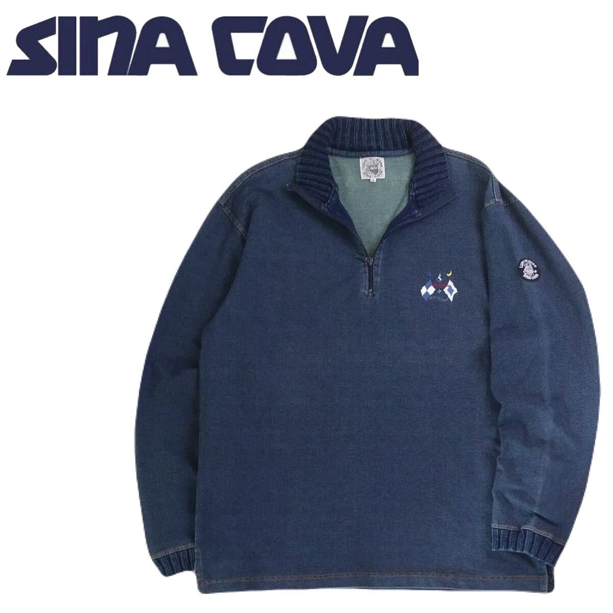 > 特大LL 極美品 豪華刺繍 SINA COVA インディゴ染 ワッペン 蓄熱保温 ハーフジップ スウェット トレーナー メンズ シナコバ カプリ 2511261
