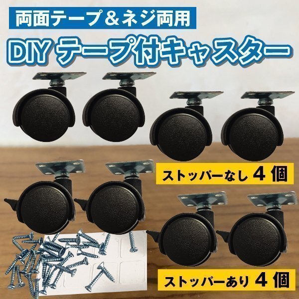 - 貼るキャスター 後付け DIY家具の交換キット 粘着テープ式キャスター 強力両面テープ&ネジ付き 移動