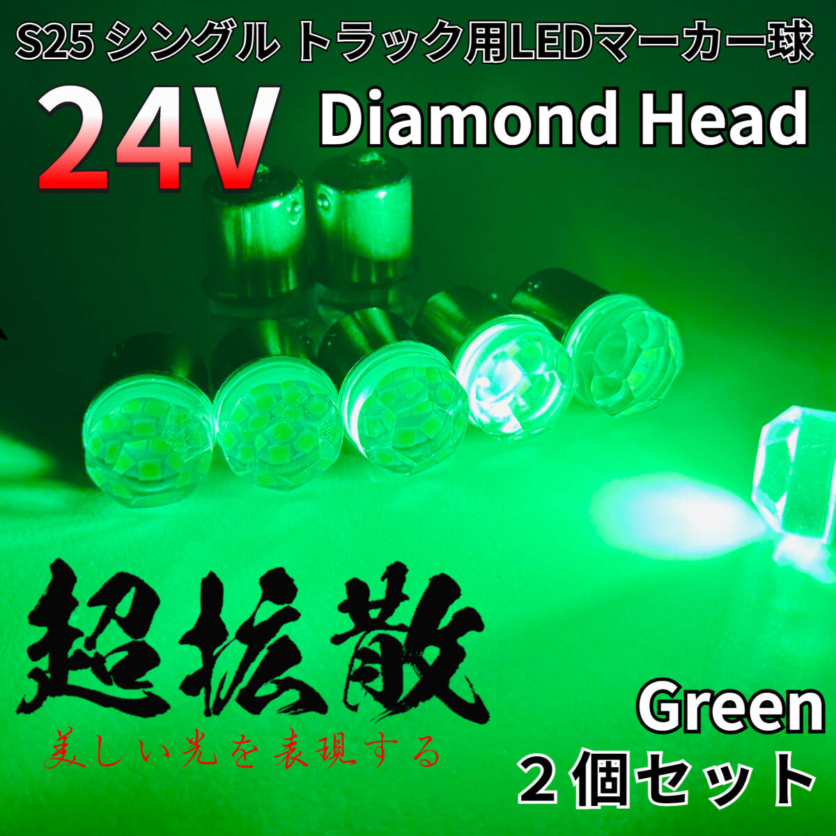 > 24V トラック用品 S25 BA15S 平行ピン シングル球 LED マーカーランプ サイドマーカー バスマーカー ダイヤバルブ グリーン 2個セット
