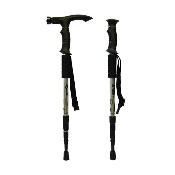 - 【vaps_4】アルミ製 4段伸縮 12LED T/I型トレッキングステッキ 銀 送込