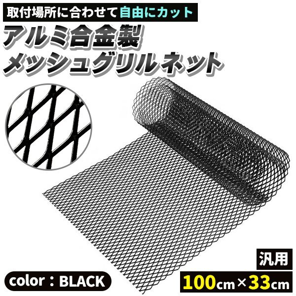 > グリル メッシュ ネット アルミ製 100 × 33 cm エアロ 加工 等 網 車 バイク 旧車 ツーリング ドレスアップ エアロ ダクト ネット 黒