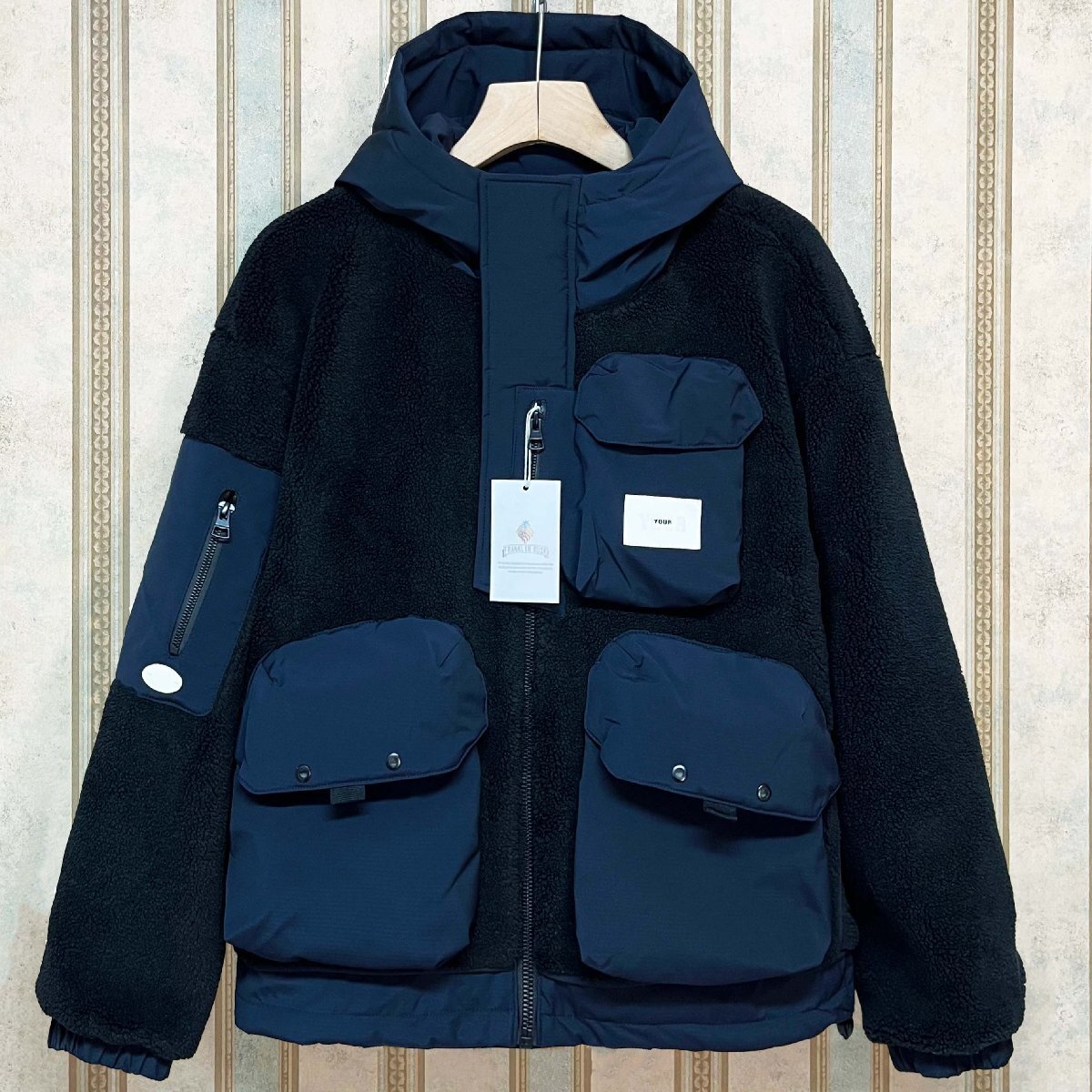 > 個性 定価11万 FRANKLIN MUSK・アメリカ・ニューヨーク発 ダウンジャケット カシミヤ 保温 防風 柔らかい ボアコート アウター サイズ2