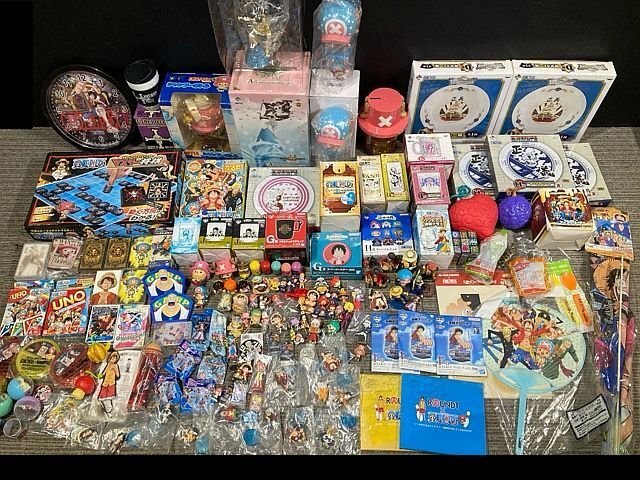 > Y4283M ワンピース グッズ 一番くじ A賞 フィギュア 食器 時計 マスコット キーホルダー カード 指人形 まとめ