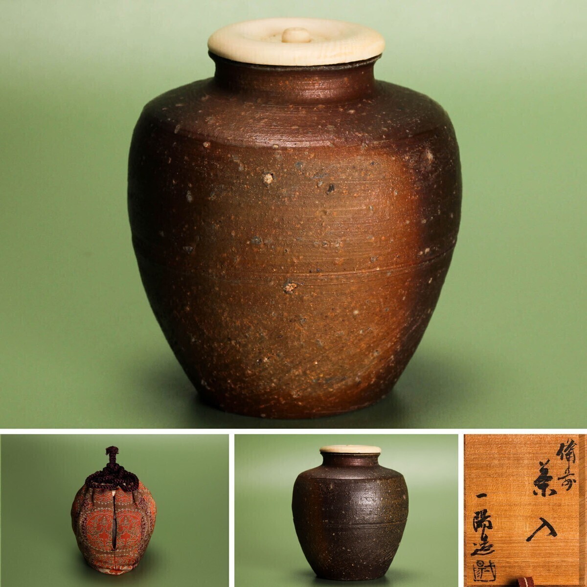 - 木村一陽 備前茶入 共箱 仕覆 茶道具 本物保証