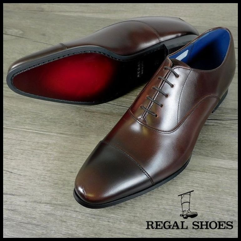 - 新品 訳有 1円~ 定価29,700円 リーガル REGAL ストレートチップ 25cm 濃茶 内羽根式 ビジネスシューズ セミマッケイ式 メンズ【4924】