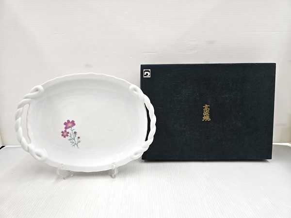 - 【未使用展示品】 天草 高浜焼 手付 楕円皿 31cm コスモス ○YR-18858○