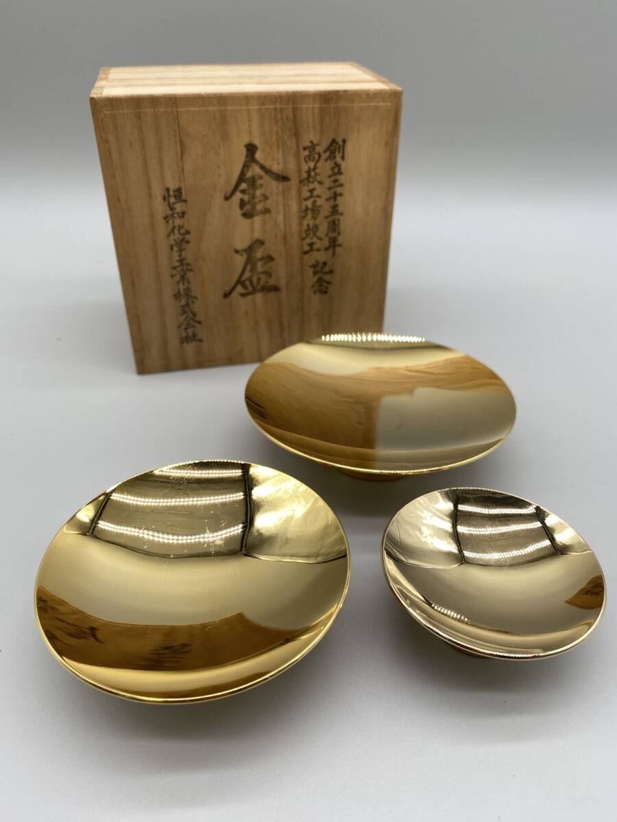 - 金杯 大中小 三点セット 桐箱入 24KGP 金メッキ 酒器 盃 恒和化学工業株式会社 竣工記念 金杯(13891)