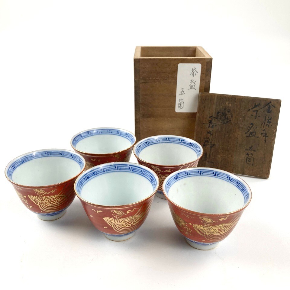 - 永楽善五郎 造 金襴手 煎茶碗 5客 共箱 大日本永楽印 煎茶器 陶磁器 茶道具 4317281