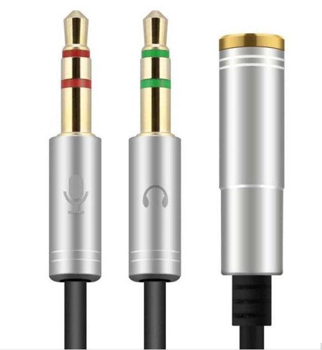 - 【vaps_2】オーディオ分配ケーブル(3.5mmステレオ(メス)⇔3.5mmステレオ(オス×2 ※オス側はマイクとイヤホンに分岐) 《シルバー》 送込