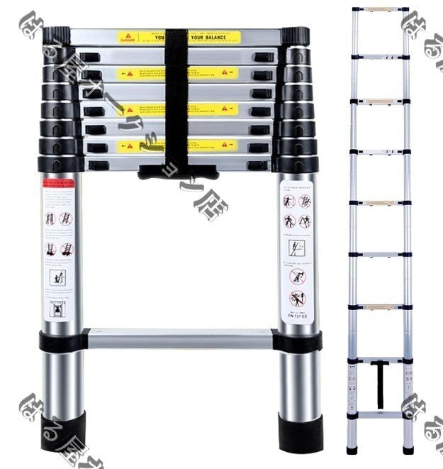 - 伸縮はしご 最長2.6m (8.5ft) 折り畳み伸縮梯子 多機能アルミはしご 持ち運びに便利 軽量 耐荷重150kg 室内室外両用 安全ロック スライド式