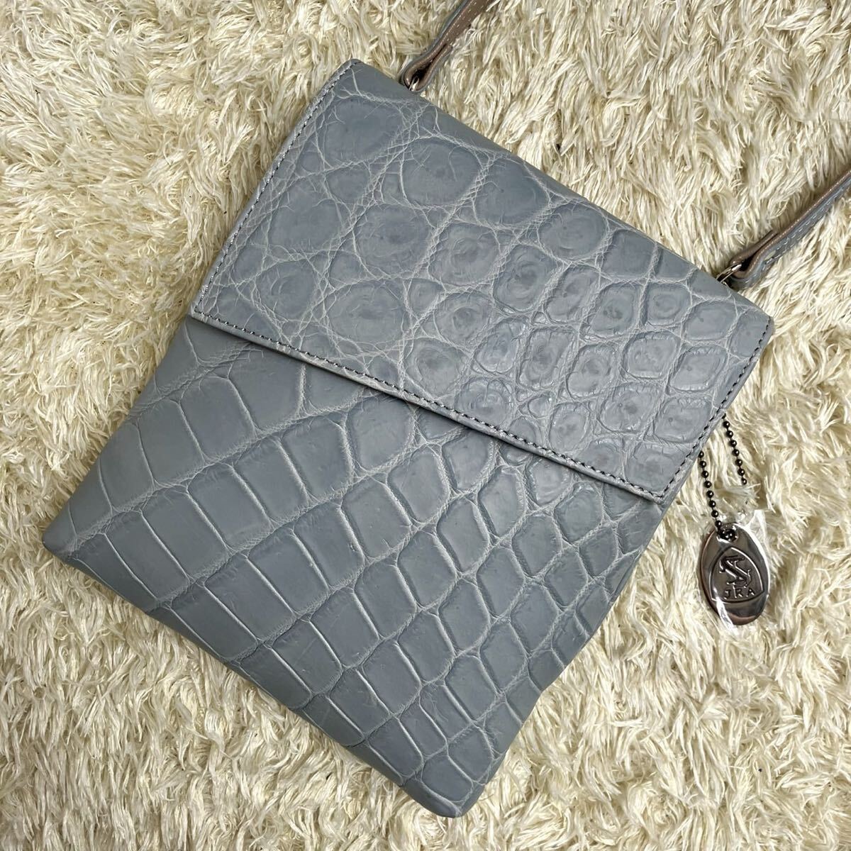 - 【希少色! JRA! 美品!】マットクロコダイル クロコ サコッシュ ショルダーバック ボディバッグ 鰐革 水色 メンズ レディース 斜め掛け〇
