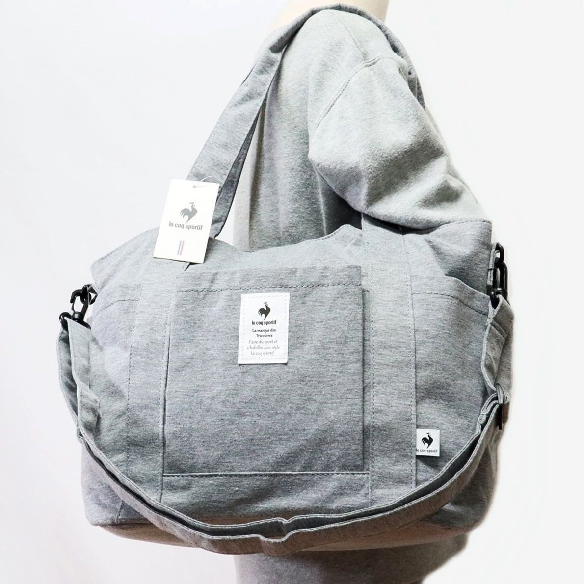 - ★ルコック le coq sportif 新品 便利 ポケットいっぱい シンプル ショルダー トートバッグ BAG 鞄 バッグ 灰 [36237-030] 一 六★QWER★