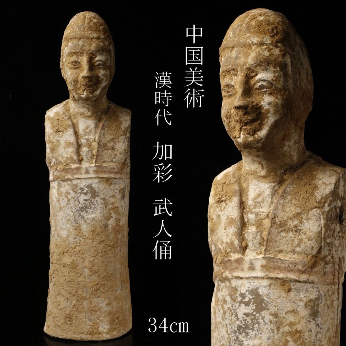 - 【LIG】中国美術 漢時代 加彩 武人俑 34㎝ 人物像 置物 時代唐物 コレクター収蔵品 ② [O]25.5