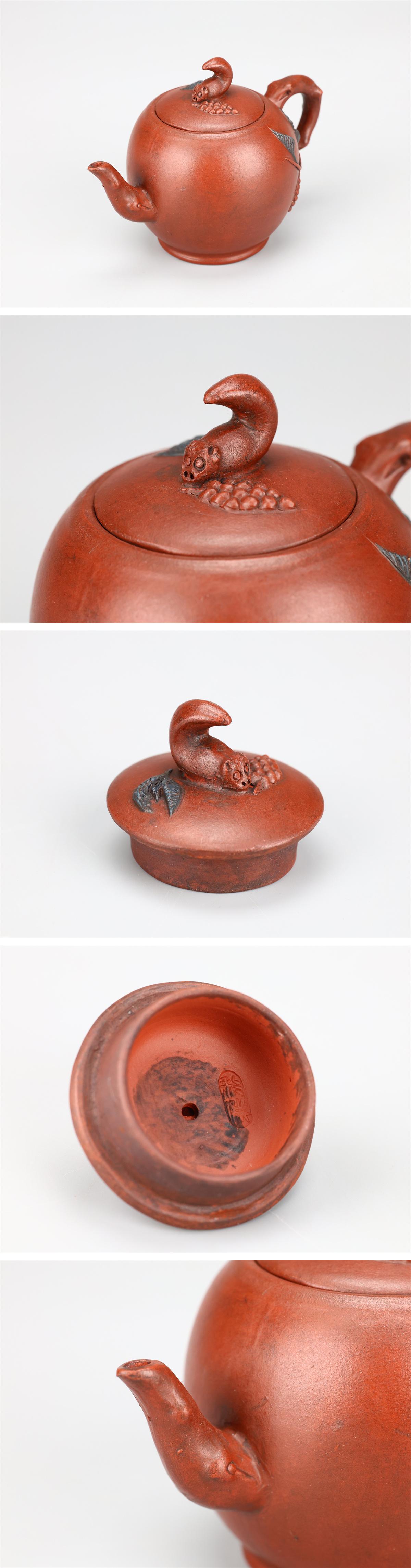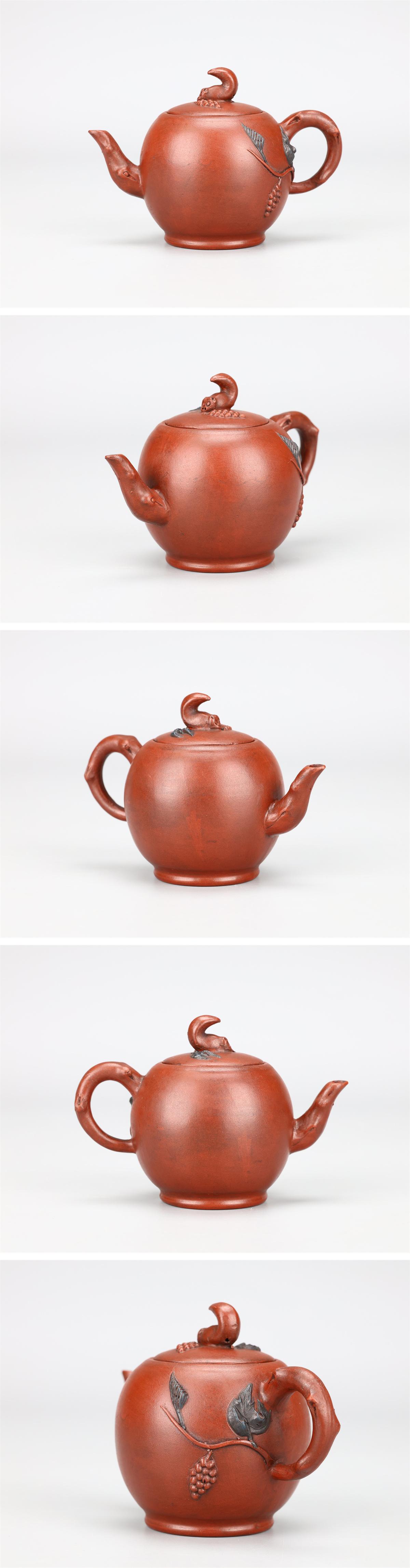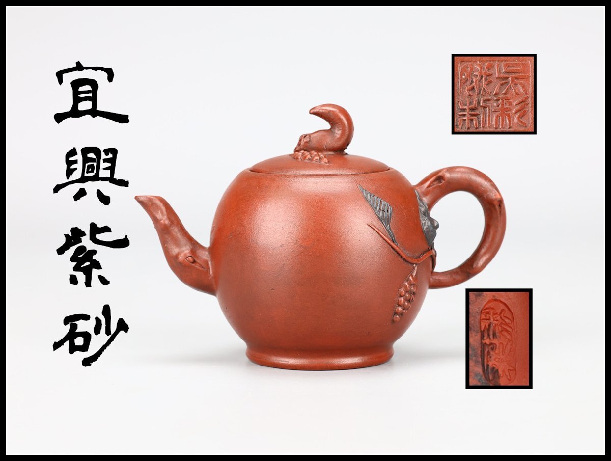 【吉】CO224 唐物 【宜興紫砂】 朱泥 葡萄紋 急須/美品!